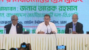 বক্তব্য শেষে সাংবাদিকদের প্রশ্নের উত্তর দেন তারেক রহমান।
