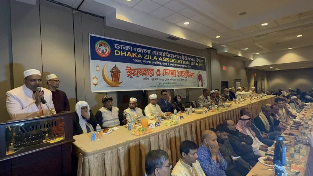 নিউইয়র্কে বসবাসরত ঢাকাবাসীদের সংগঠন ঢাকা জেলা অ্যাসোসিয়েশন ইউএসএ ইনকের ইফতার ও দোয়া মাহফিল অনুষ্ঠিত হয়েছে। ধর্মীয় ভাব-গম্ভীর পরিবেশে ৭ মার্চ শনিবার নিউইয়র্ক সিটির লাগোয়ার্ডিয়া ম্যারিয়ট হোটেলের বলরুমে এ আয়োজন করা হয়। এতে নিউইয়র্কে বসবাসরত প্রবাসী ঢাকাবাসী ছাড়াও বিভিন্ন শ্রেণি-পেশার বিশিষ্টজনেরা অংশ নেন